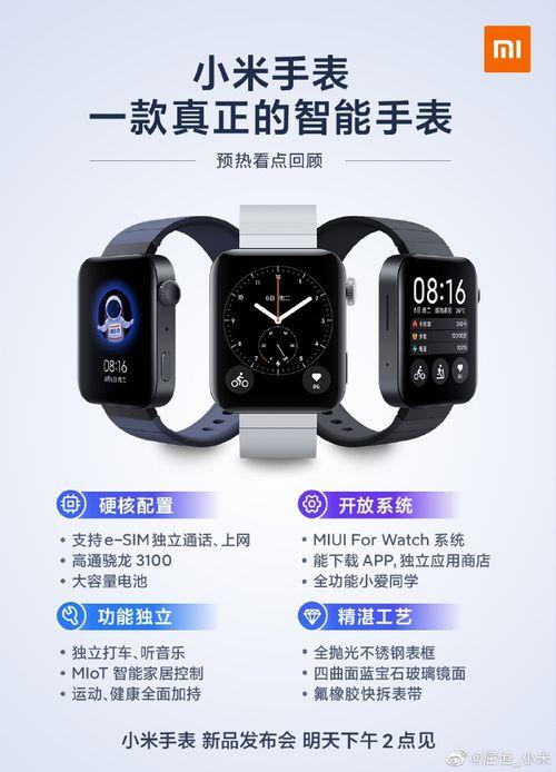 最近有没有被小米手表3的最新爆料视频刷屏啊?这可是科技圈的大事,咱们得好好聊聊。想象一款集时尚与科技于一身的手表,即将走进我们的生活,是不是有点小激动呢?那就跟着我一起,从外观设计、功能特点、性能参数等多个角度,来揭开小米手表3的神秘面纱吧!