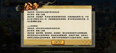 首先,咱们得聊聊这个月的全新挑战。据可靠消息,官方将在8月推出一系列全新的挑战任务,这些任务不仅考验你的忍术,还考验你的智慧。听说,完成这些挑战后,你还能获得独一无二的奖励哦!是不是已经迫不及待想要挑战一下了呢?
